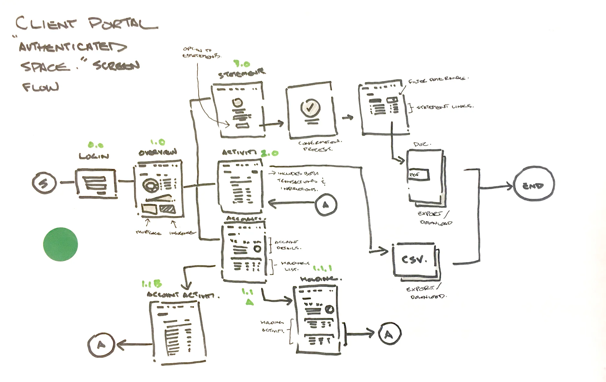 Sketch example: Preliminary screen flow for authenticated space